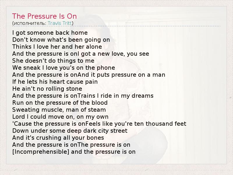 А как ты думаешь, о чем песня "The Pressure Is On" ?