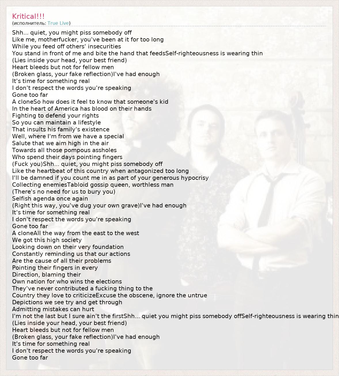 А как ты думаешь, о чем песня "Kritical!!!" ?