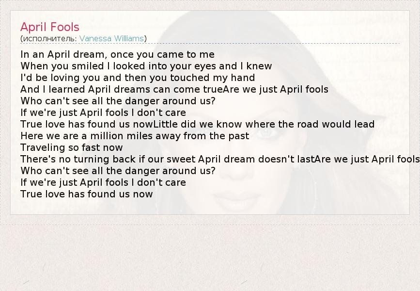 There's no turning back if our sweet April dream doesn't lastAre we just April fools