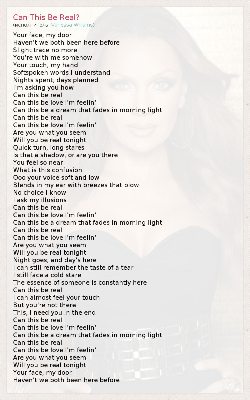А как ты думаешь, о чем песня "Can This Be Real?" ?