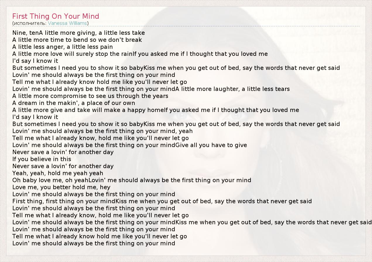 А как ты думаешь, о чем песня "First Thing On Your Mind" ?