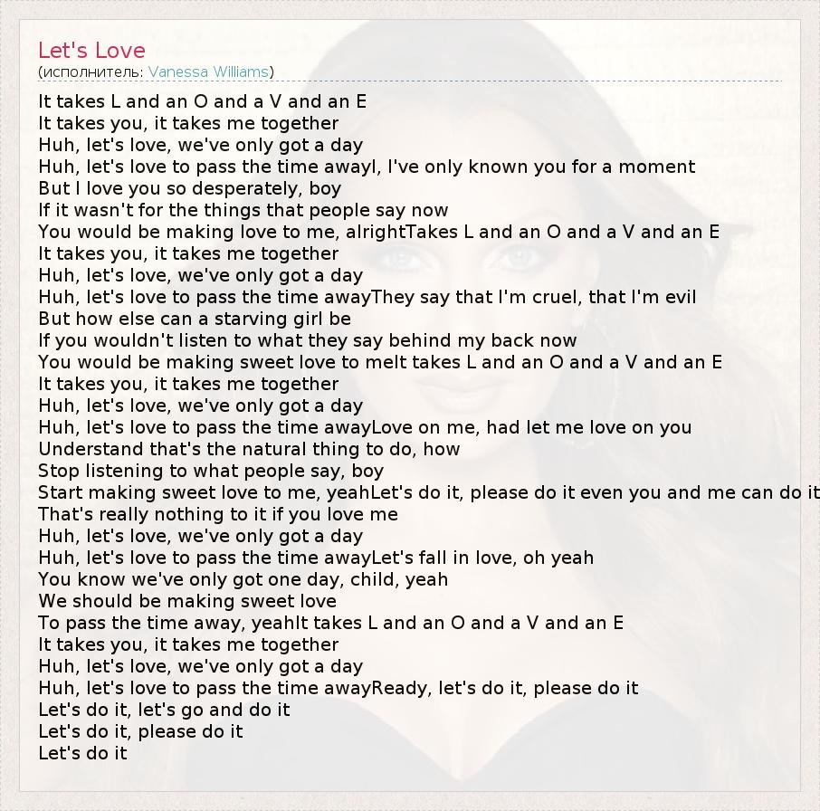 You would be making sweet love to meIt takes L and an O and a V and an E