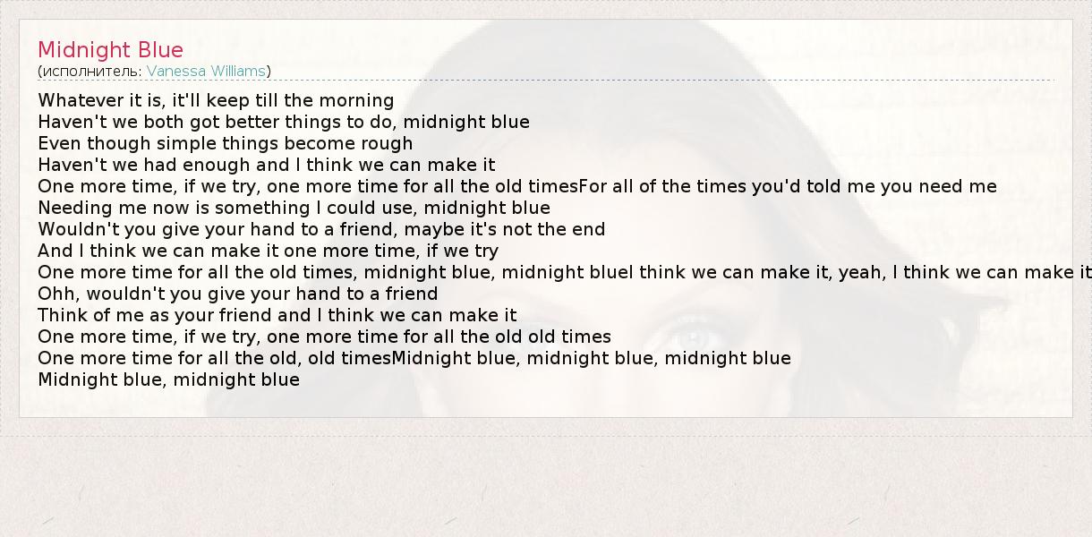 One more time for all the old times, midnight blue, midnight blueI think we can make it, yeah, I think we can make it