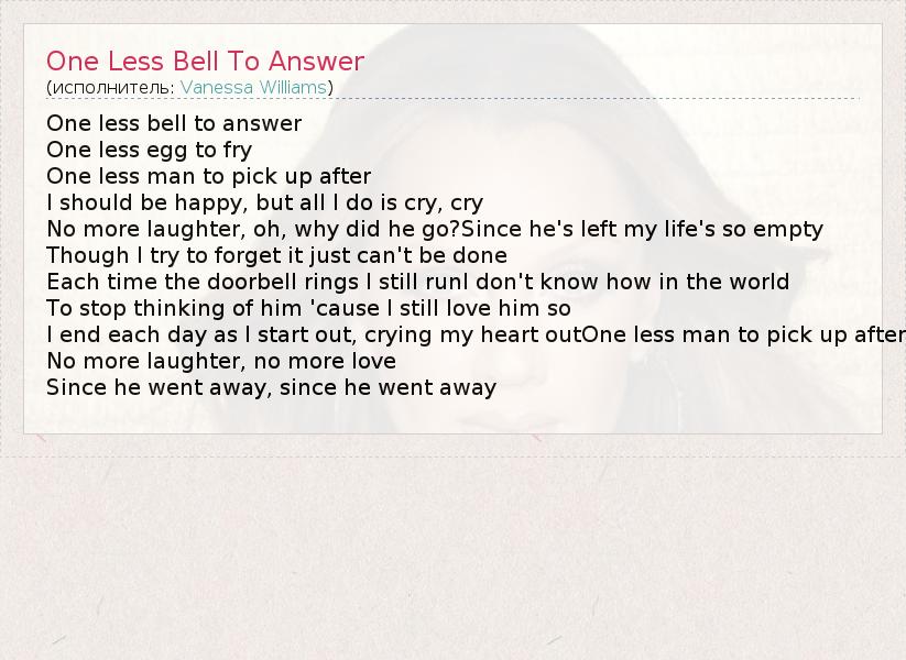 А как ты думаешь, о чем песня "One Less Bell To Answer" ?