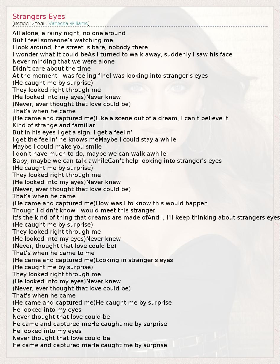 А как ты думаешь, о чем песня "Strangers Eyes" ?