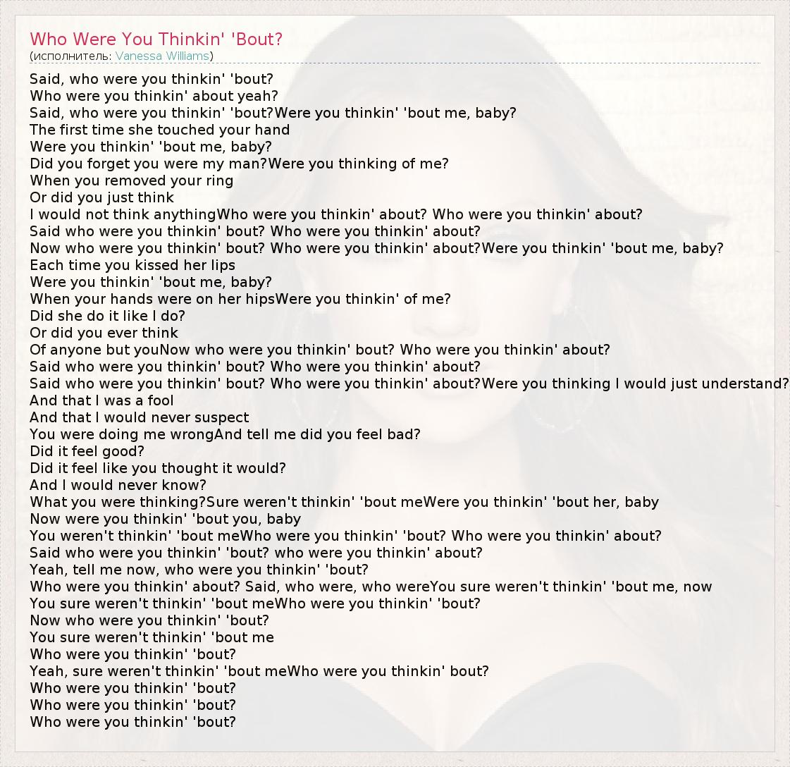 А как ты думаешь, о чем песня "Who Were You Thinkin' 'Bout?" ?