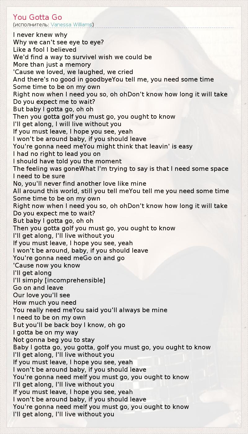 Baby I gotta go, you gotta, goIf you must go, you ought to know