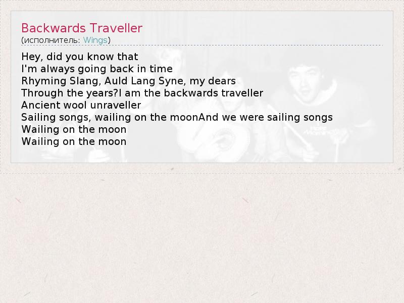 А как ты думаешь, о чем песня "Backwards Traveller" ?