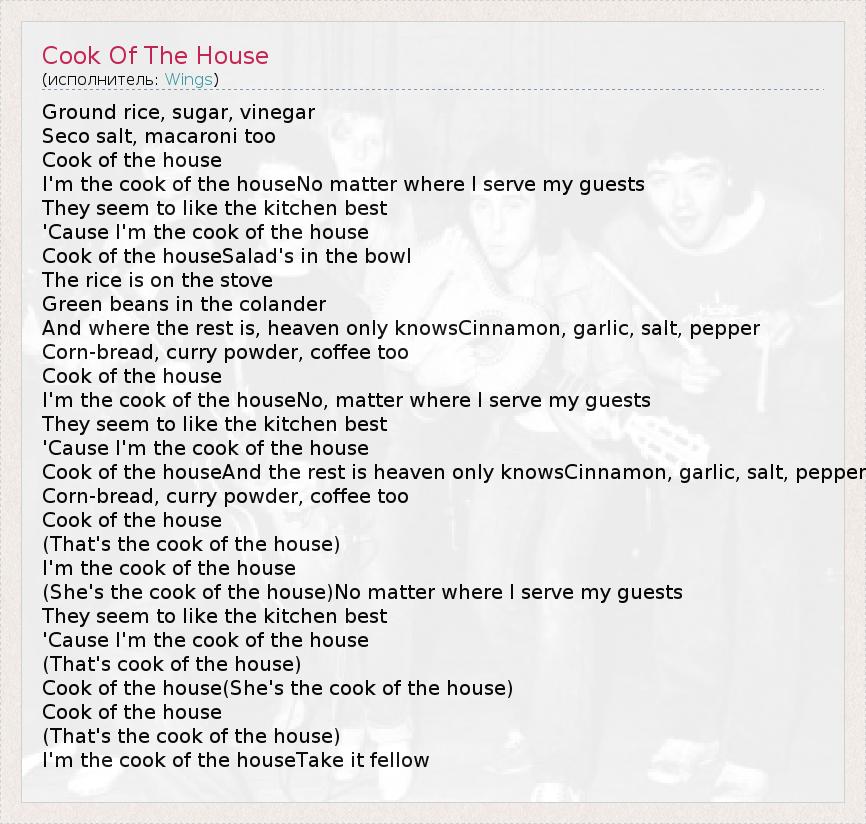 А как ты думаешь, о чем песня "Cook Of The House" ?