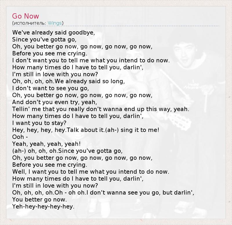 Oh, oh, oh, oh.Oh - oh oh.I don't wanna see you go, but darlin',