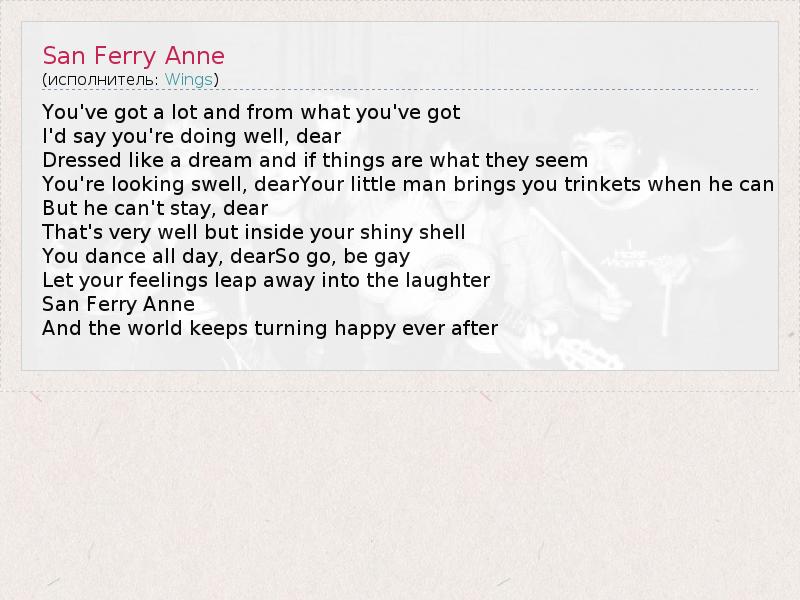 А как ты думаешь, о чем песня "San Ferry Anne" ?