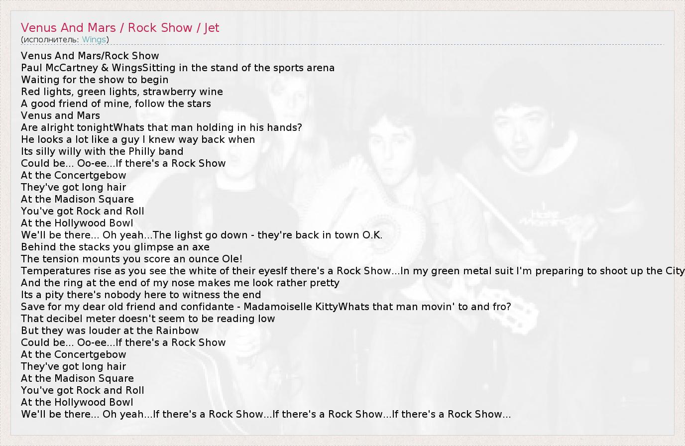 А как ты думаешь, о чем песня "Venus And Mars / Rock Show / Jet" ?