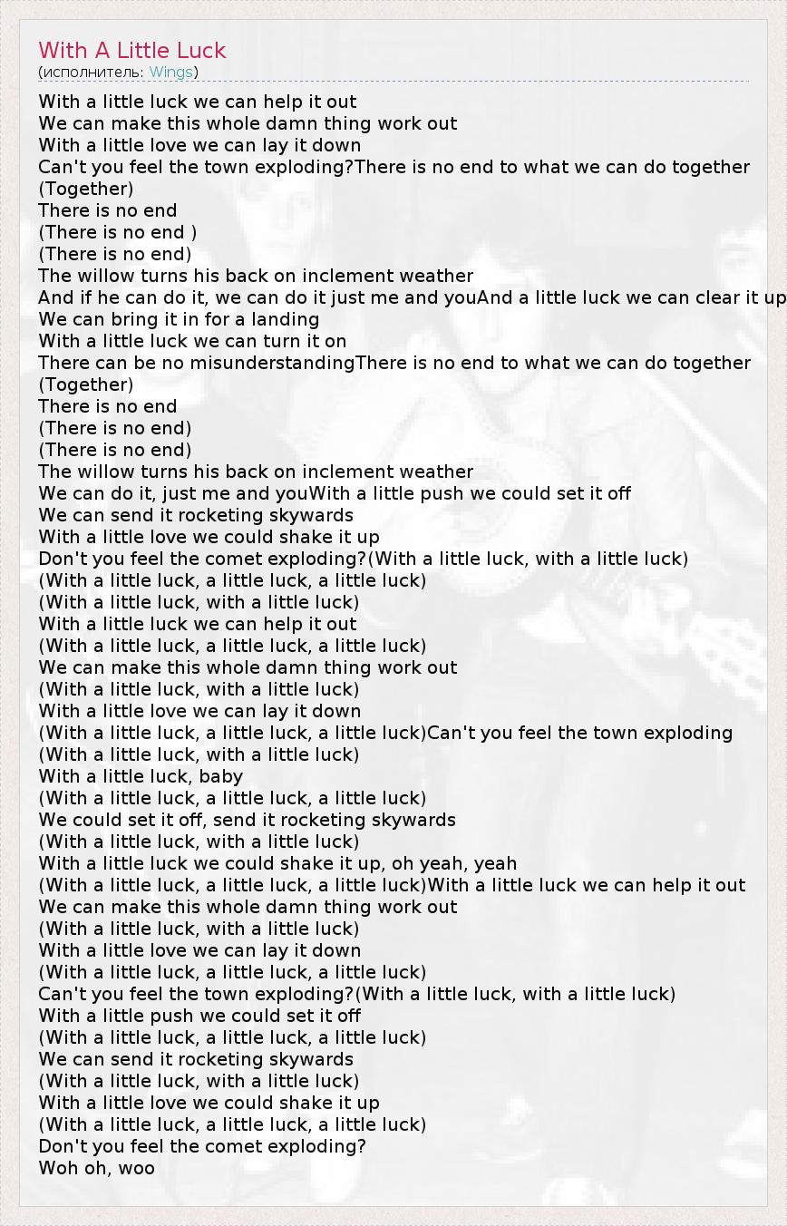 А как ты думаешь, о чем песня "With A Little Luck" ?