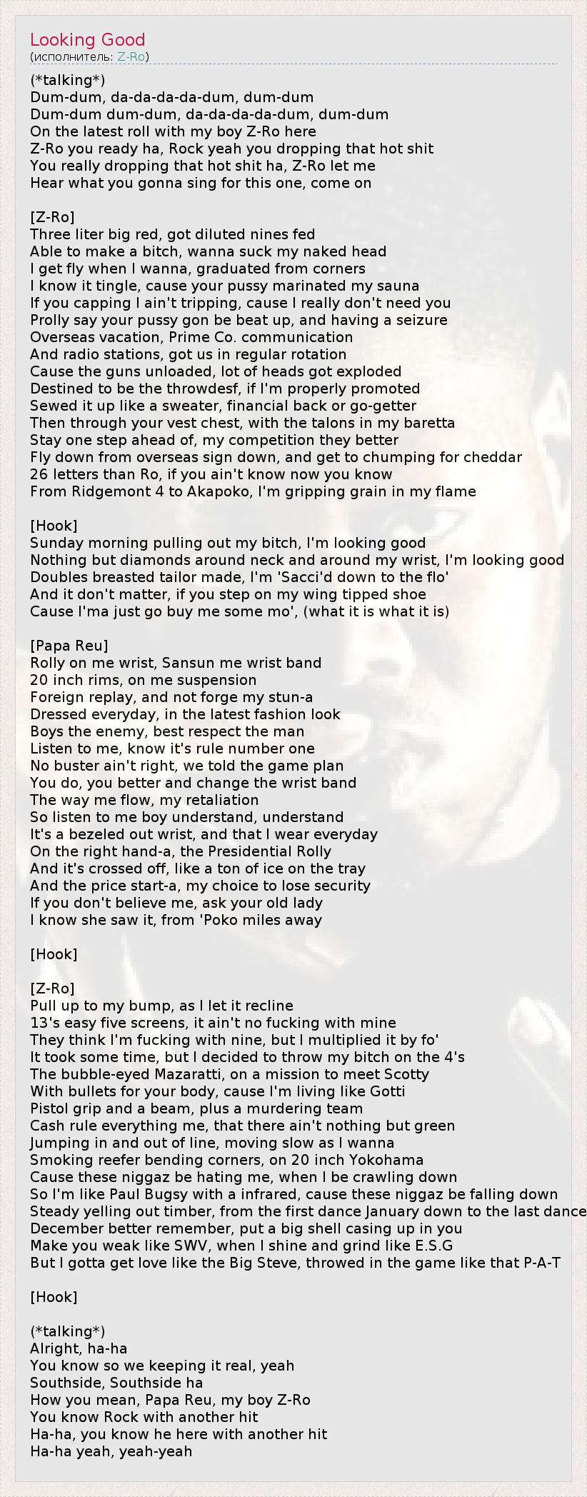 Это интересно:Joseph W. McVey, более известный под сценическим псевдонимом Z-Ro. Уроженец Хьюстона, начал свою карьеру в 1995 году.Имеет репутацию южного рэпера, однако звёздный статус не распространяется дальше Южных Штатов. Газета "New York Times" назвала его "Одним из самых недооценённых Американских рэперов".Альбом "I'm Still Livin' " был выпущен в 2006 году, в это время Z-Ro... продолжение
