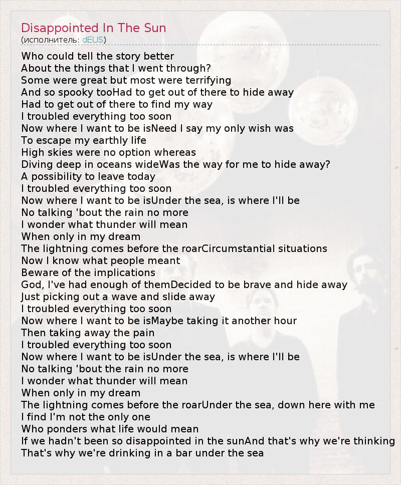А как ты думаешь, о чем песня "Disappointed In The Sun" ?