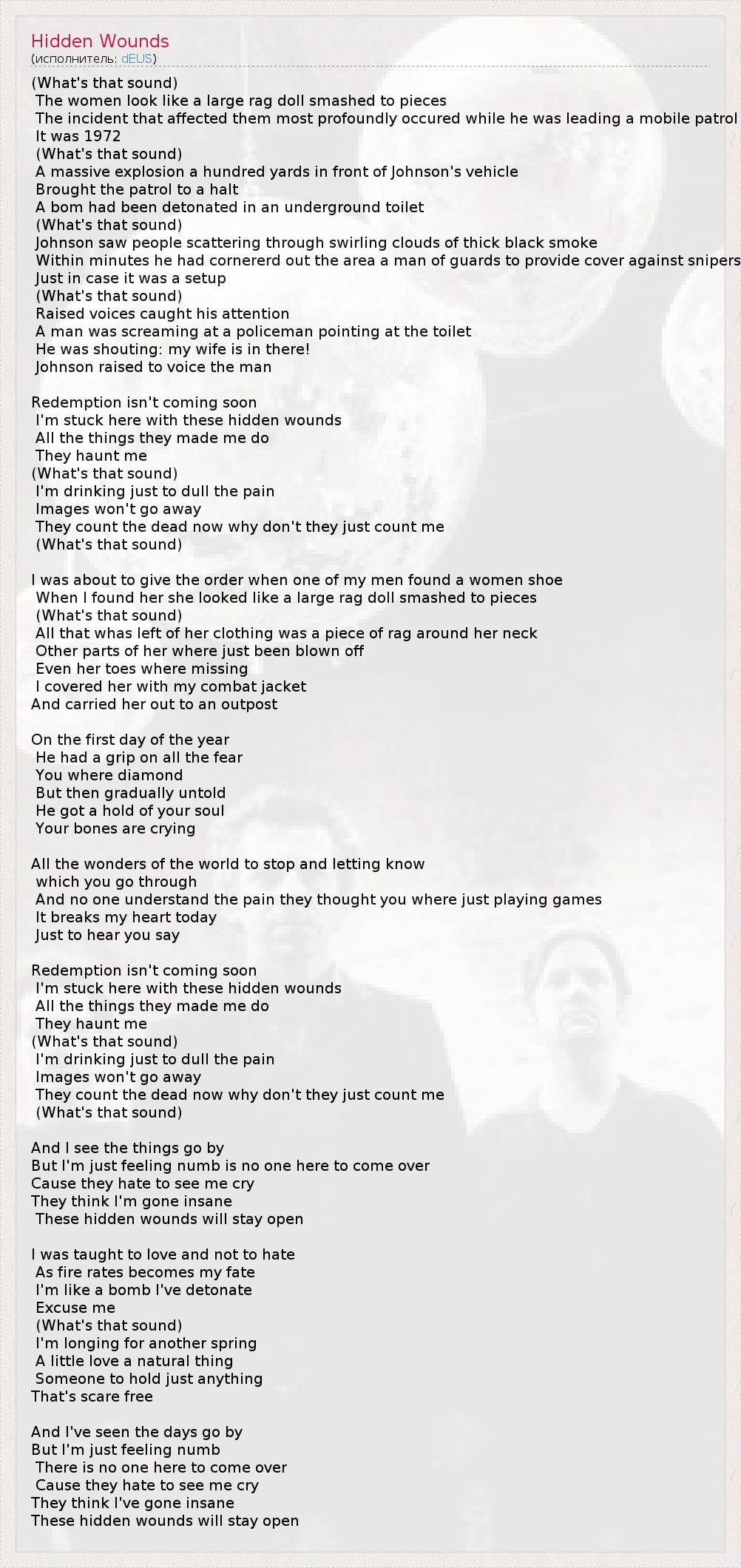 А как ты думаешь, о чем песня "Hidden Wounds" ?