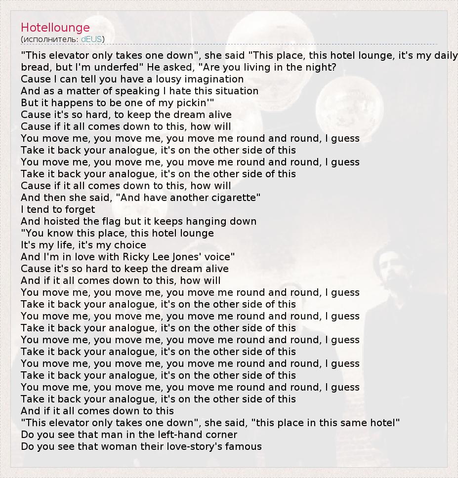 А как ты думаешь, о чем песня "Hotellounge" ?