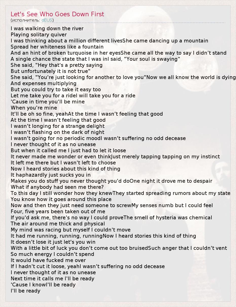 А как ты думаешь, о чем песня "Let's See Who Goes Down First" ?