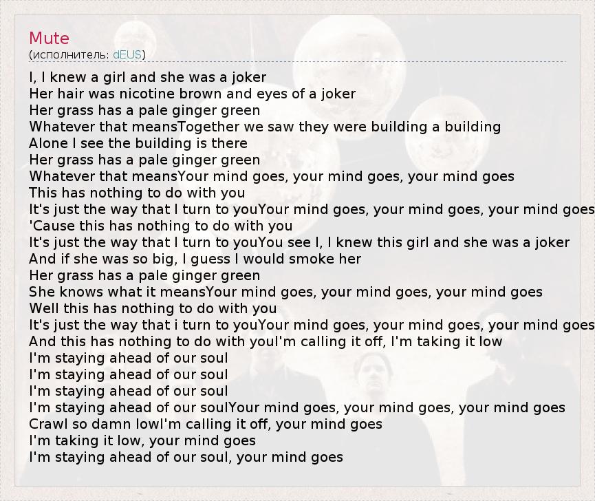 I'm staying ahead of our soulYour mind goes, your mind goes, your mind goes