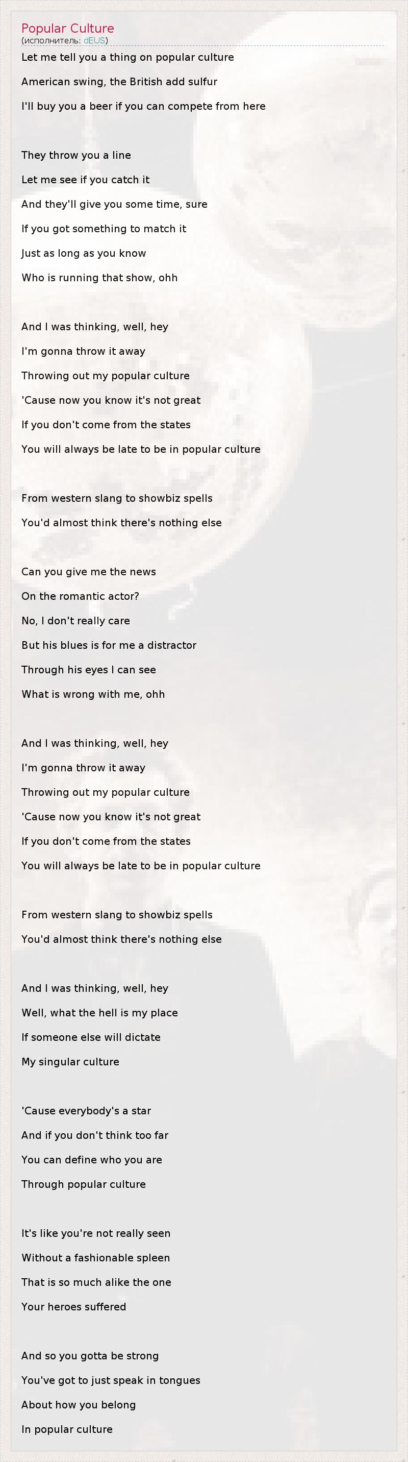 А как ты думаешь, о чем песня "Popular Culture" ?