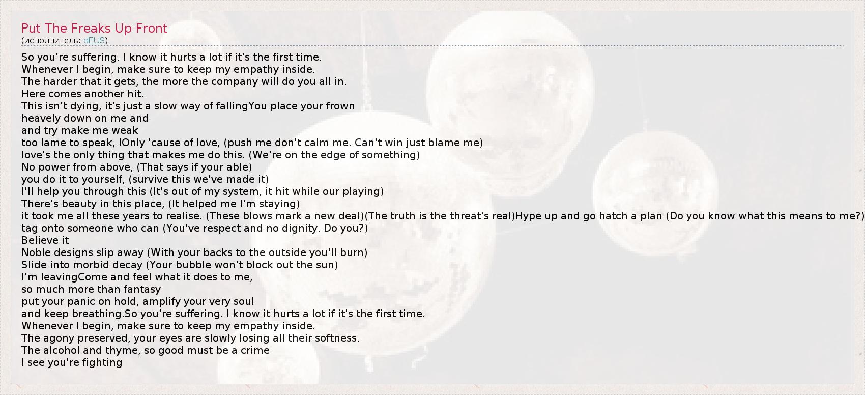 ГлавнаяИсполнителиdEUSPut The Freaks Up Front