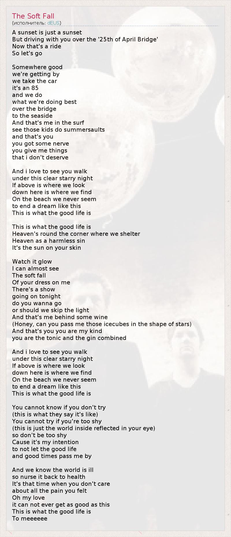 А как ты думаешь, о чем песня "The Soft Fall" ?
