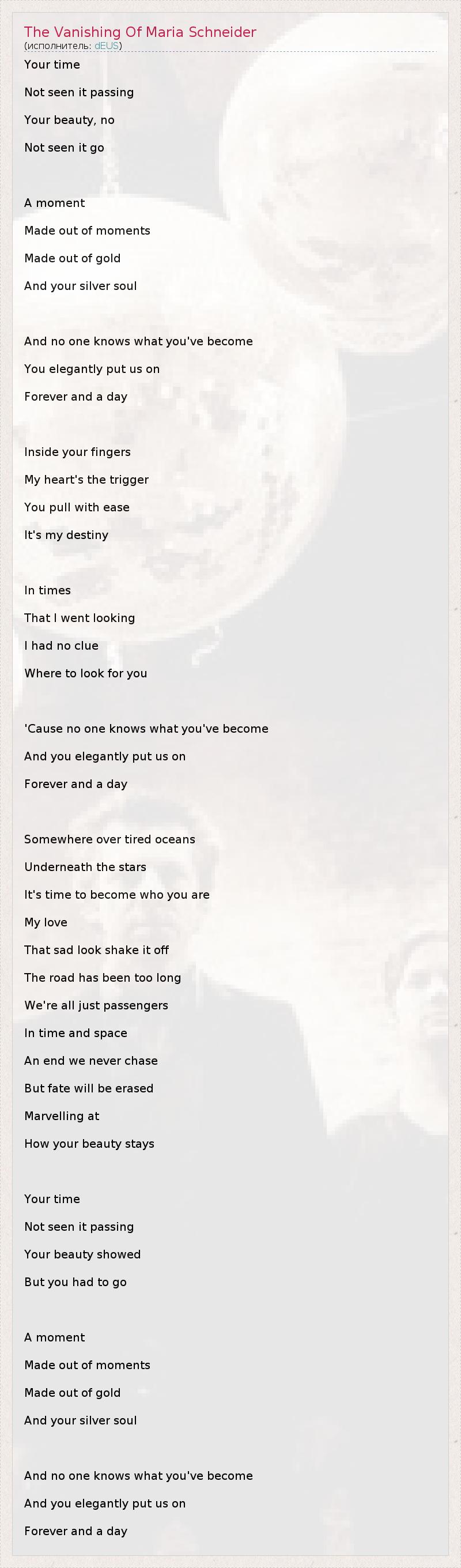 ГлавнаяИсполнителиdEUSThe Vanishing Of Maria Schneider