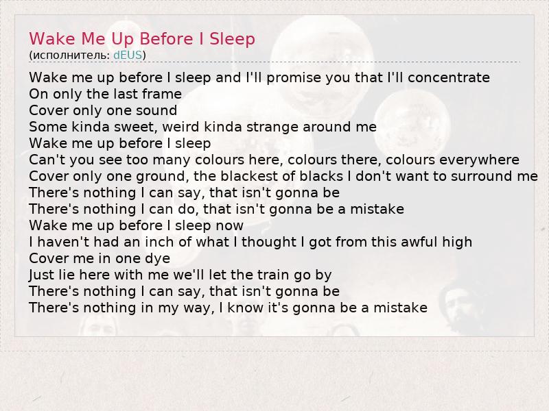 ГлавнаяИсполнителиdEUSWake Me Up Before I Sleep