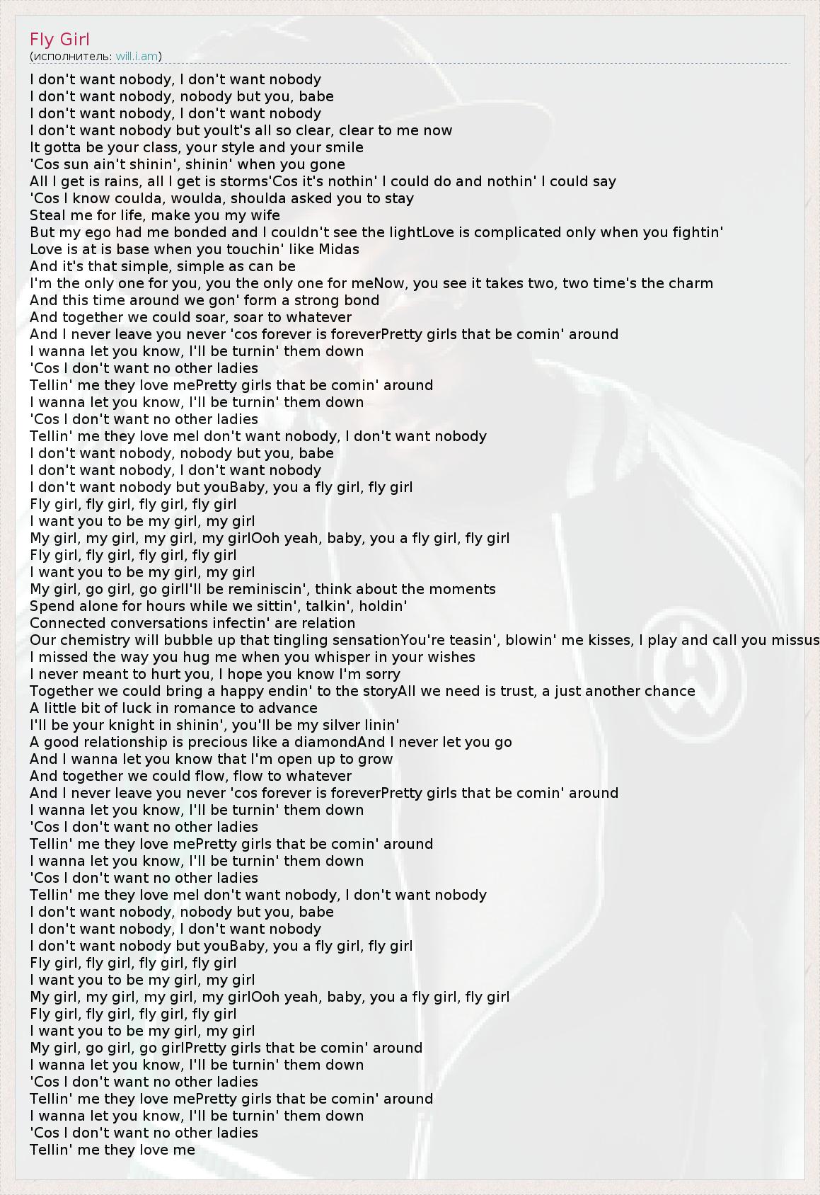 А как ты думаешь, о чем песня "Fly Girl" ?