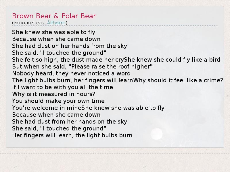 А как ты думаешь, о чем песня "Brown Bear & Polar Bear" ?