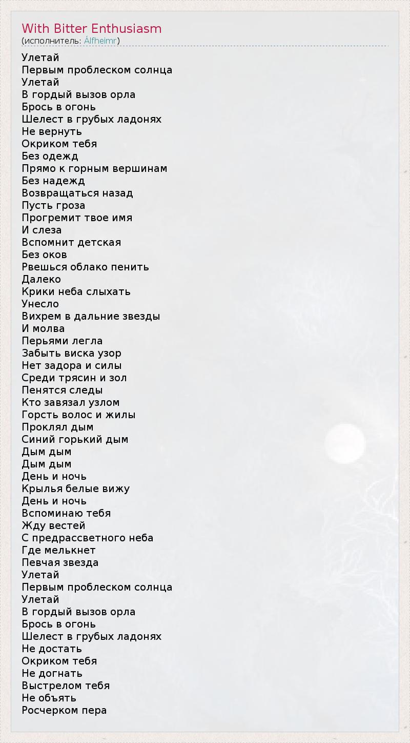 ГлавнаяИсполнителиÁlfheimrWith Bitter Enthusiasm