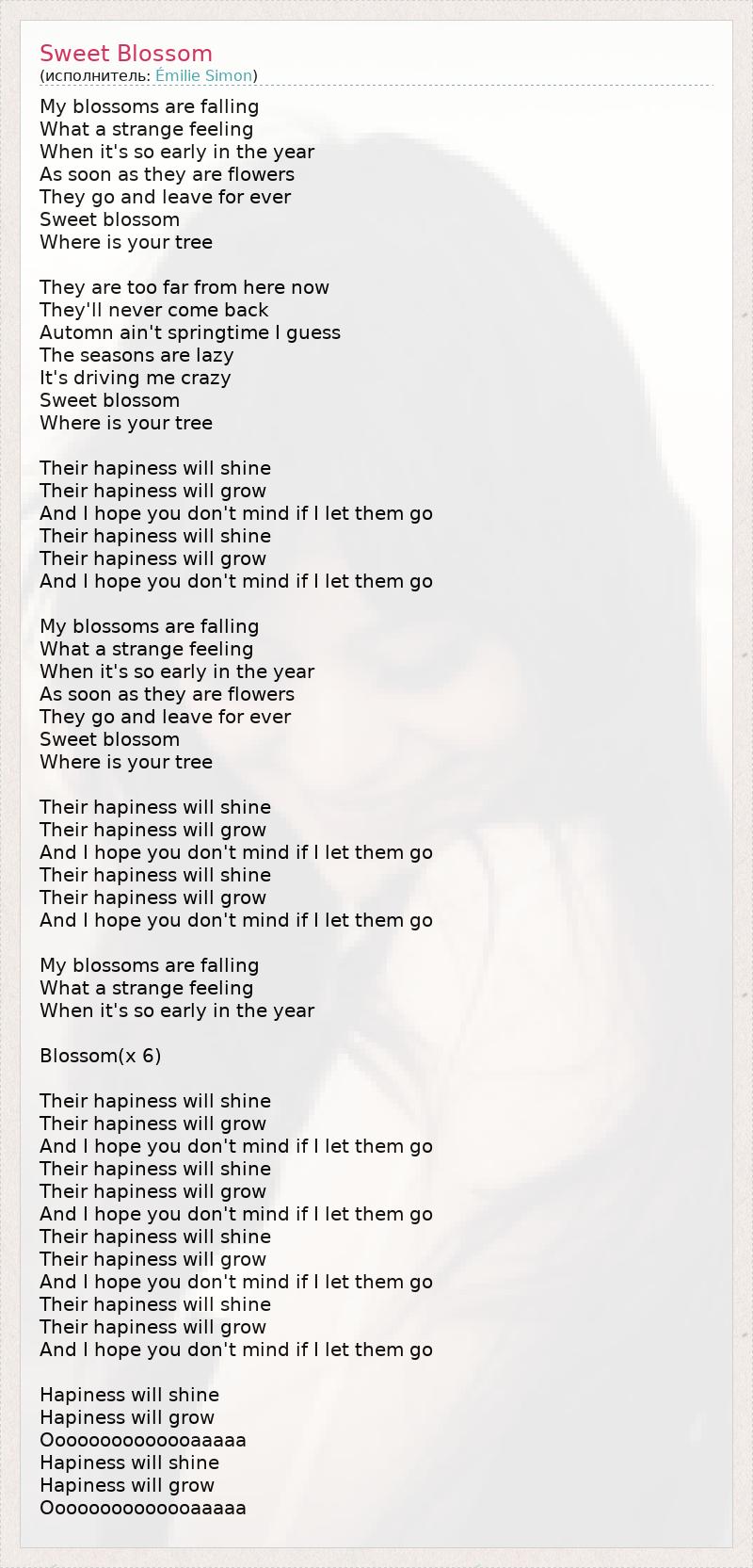 А как ты думаешь, о чем песня "Sweet Blossom" ?