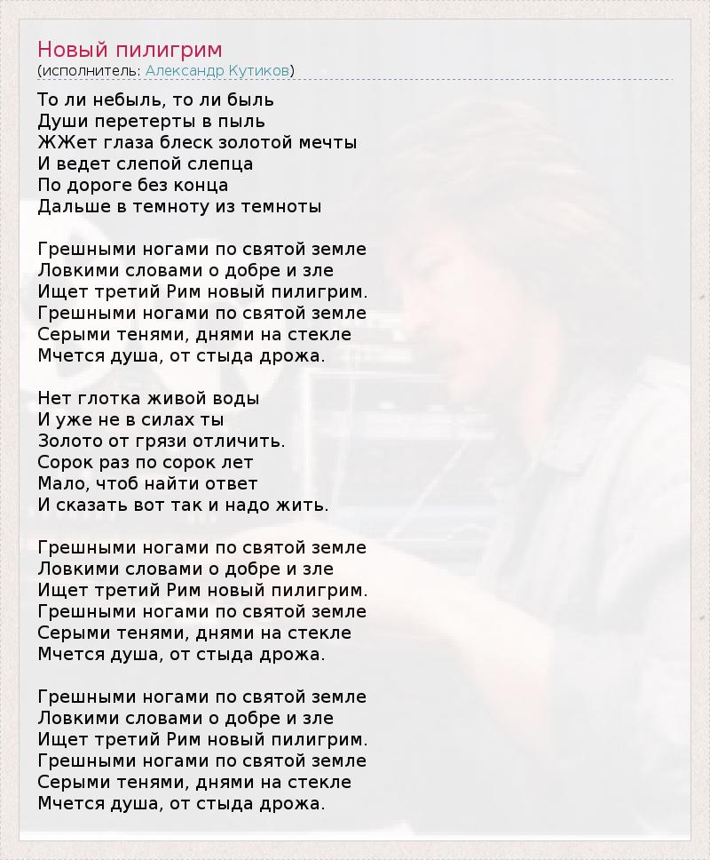 А как ты думаешь, о чем песня "Новый пилигрим" ?