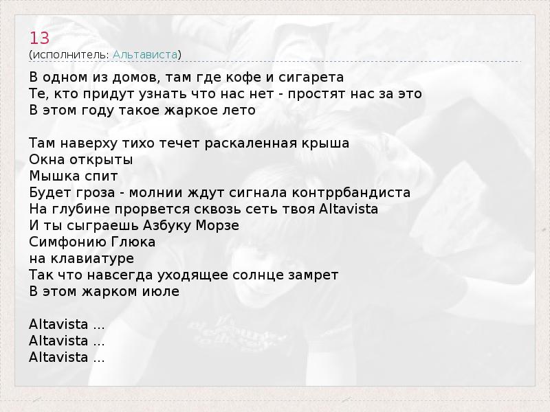 Перебравшись из Барнаула в Северную столицу, группа «Альтависта» окончательно закрепила за собой звание «питерских» музыкантов, записав свой новый альбом на легендарном «Добролете».