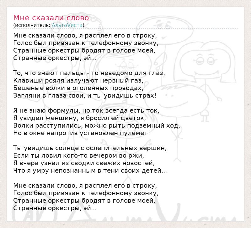 ГлавнаяИсполнителиАльтаVистаМне сказали слово