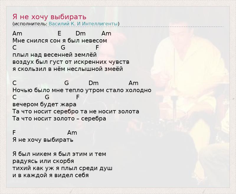 Это интересно:Нет исполнителя «Василий К. и Интеллигенты», есть исполнитель «Василий К. & Интеллигенты». Пожалуйста, исправьте теги.
