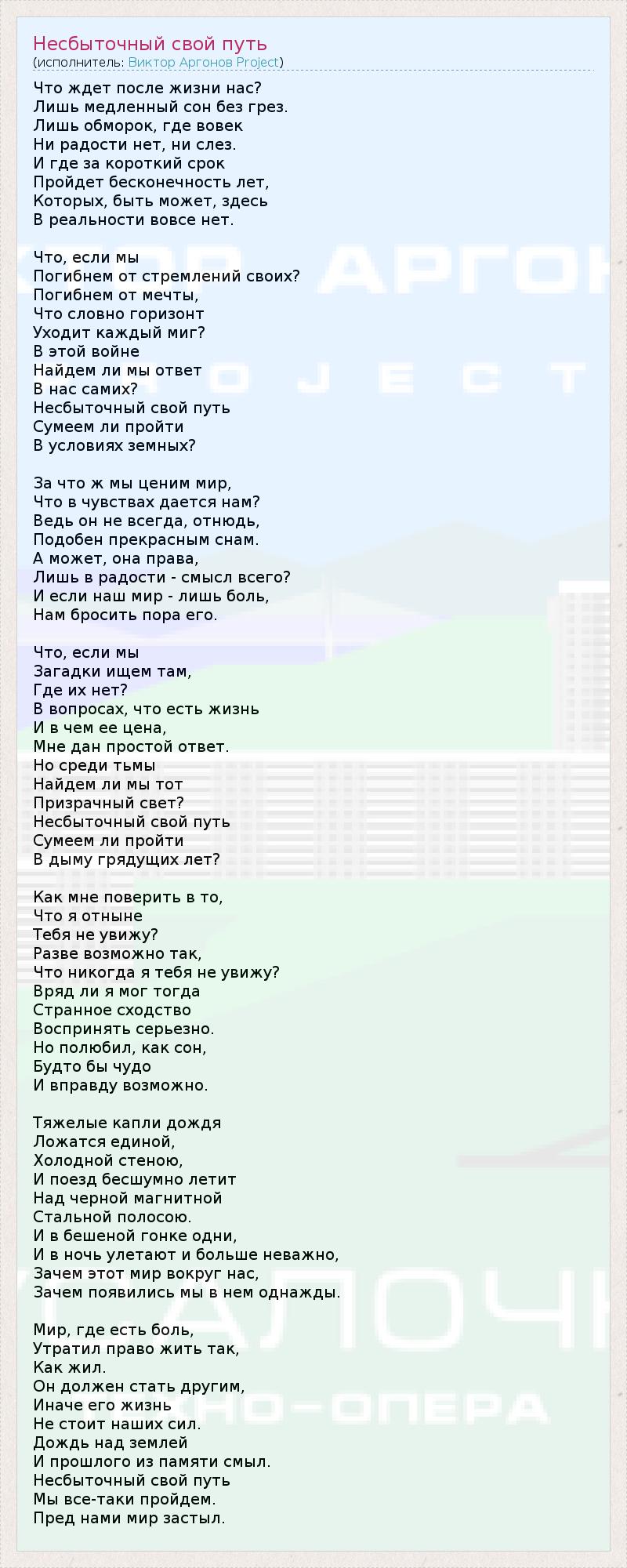 ГлавнаяИсполнителиВиктор Аргонов ProjectНесбыточный свой путь