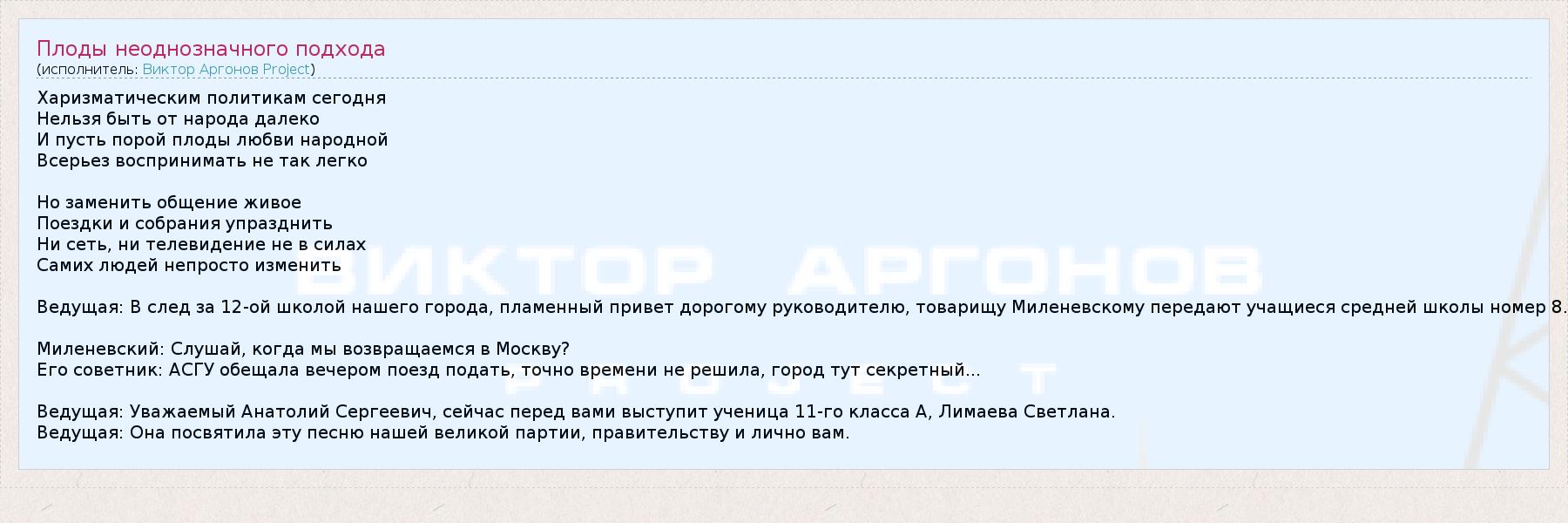 А как ты думаешь, о чем песня "Плоды неоднозначного подхода" ?