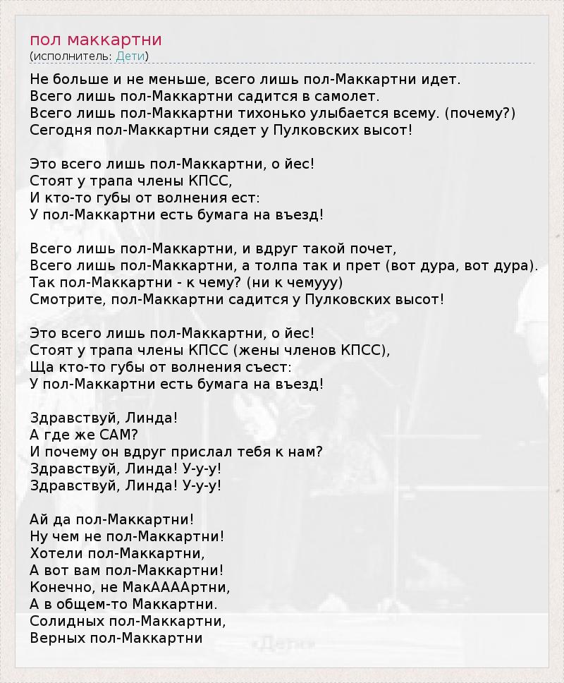 А как ты думаешь, о чем песня "пол маккартни" ?