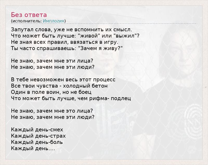 Это интересно:До появления группы ИМПЛОZИЯ стоит отметить, что участники этого коллектива уже имели свое место в музыкальном мире под различными названиями. Группа ИМПЛОZИЯ появилась осенью 2004 года. В ее состав входят: Артём - вокал, гитара, тексты; Эмиль – бас; Никита - барабаны. Первый концерт состоялся 6 октября 2004 года в «Р-КЛУБЕ». Официальным днём рождения группы является дата этого концерта. Последний... продолжение
