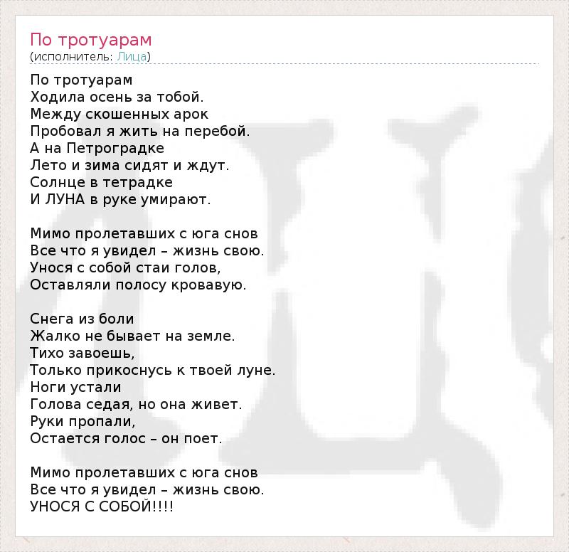 ГлавнаяИсполнителиЛицаПо тротуарам