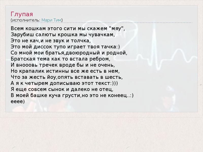 Это интересно:Пронзительный женский вокал в сочетании с неподдельными эмоциями никого не оставит равнодушным. Группа "Мари Тим" запоминается своей местами роково-дерзкой, местами лиричной и нежной манерой игры, близкими каждому текстами и неподражаемым голосом..Мария Зарубкина (Мари) - Вокал Дарья Кравцова (Дашенька) - Клавиши Андрей Аристархов (Перец) - ГитараАлексей Козин (Фунт)... продолжение