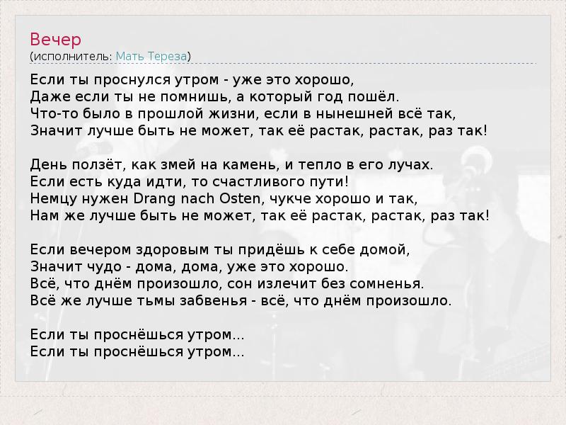 А как ты думаешь, о чем песня "Вечер" ?