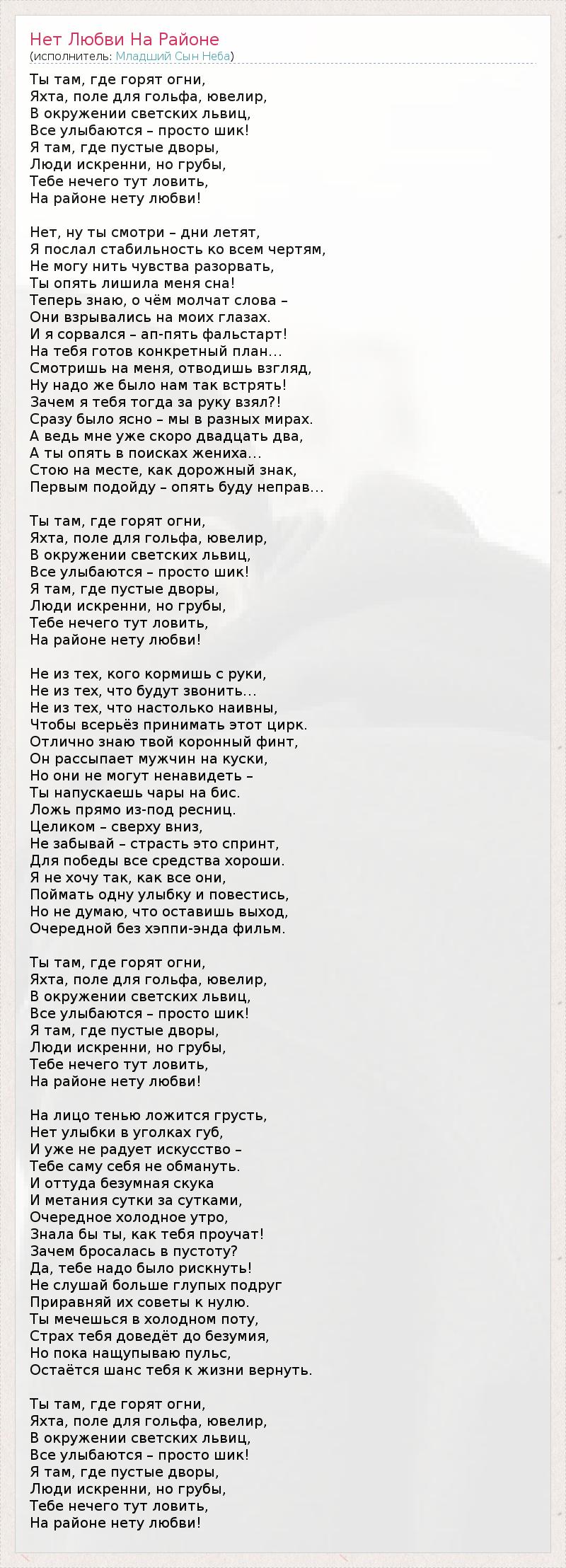 ГлавнаяИсполнителиМладший Сын НебаНет Любви На Районе