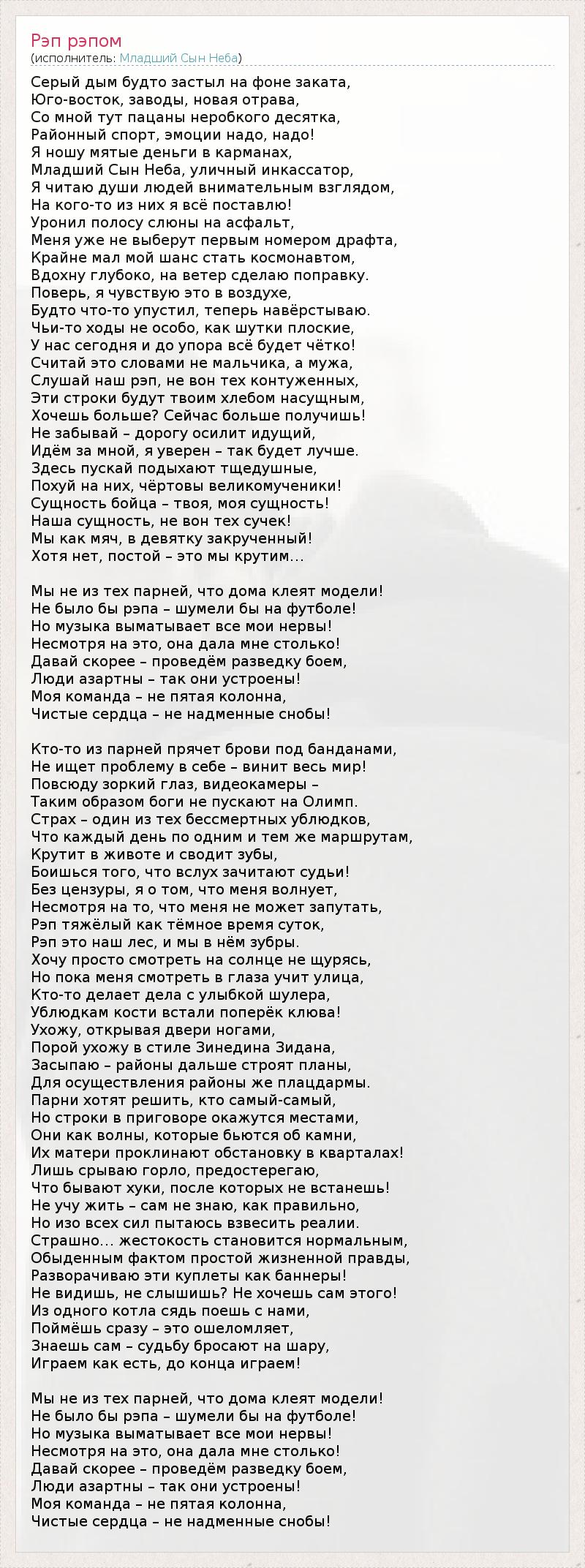 А как ты думаешь, о чем песня "Рэп рэпом" ?
