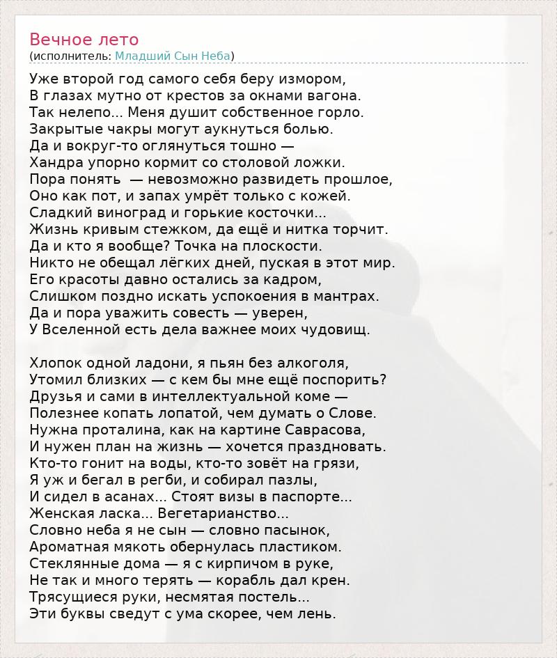 А как ты думаешь, о чем песня "Вечное лето" ?