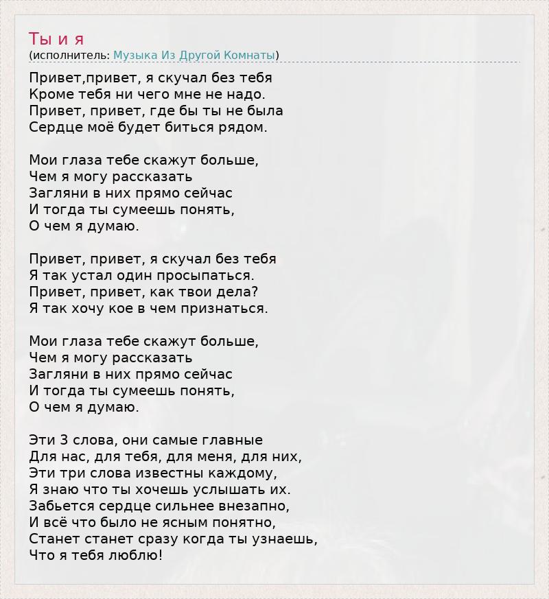 Это интересно:На стыке 2005-2006 в Иваново два давнишних друга Ильдар Авхадшин и Гоша Грушин, игравшие ранее в совместных проектах, решили снова играть вместе. Недолго думая, взяли в группу пару знакомых, желающих, но не очень умеющих играть и решили назвать команду "Музыка из другой комнаты".... продолжение