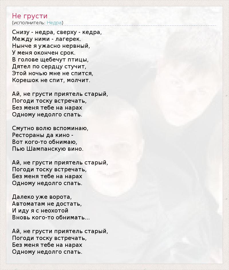 Это интересно:Группа "НедРа" появилась на свет в подмосковном городе Чехов на рубеже нового века на почве, обильно удобренной классиками русского рока. Восприняв от своих духовных учителей драйв, мелодизм, поэзию русского рок-н-ролла, НедРа смогли настолько сильно проявить собственные качества на этом поле, что теперь вполне могут считаться одними из ярчайших продолжателей... продолжение