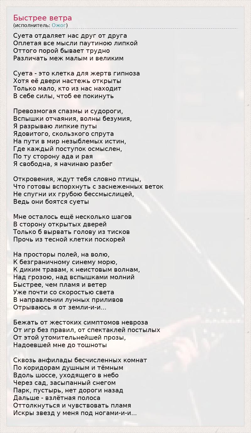 А как ты думаешь, о чем песня "Быстрее ветра" ?