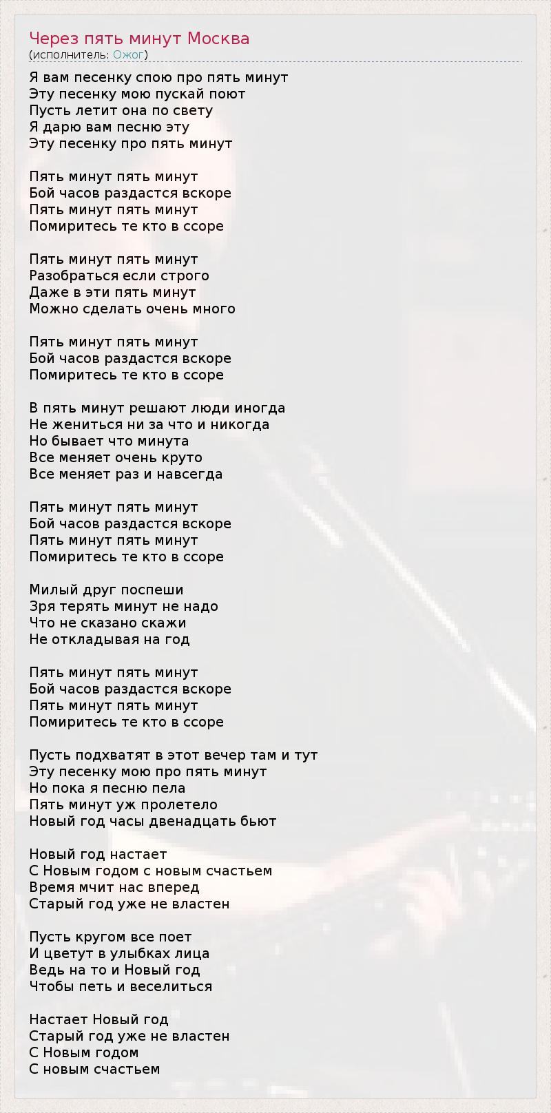 ГлавнаяИсполнителиОжогЧерез пять минут Москва